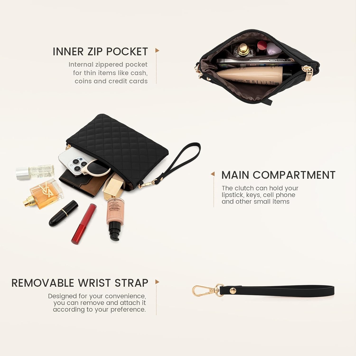 【Comfortabele schouderriem & clutch】: verstelbare, afneembare schouderriem (60-120 cm) met versterkte naden voor een lange levensduur. De leren riem kan aan verschillende hoogtes worden aangepast. Daartoe behoort een clutch (21 cm x 14 cm) voor mobiele telefoon, sleutels, kaarten en make-up.