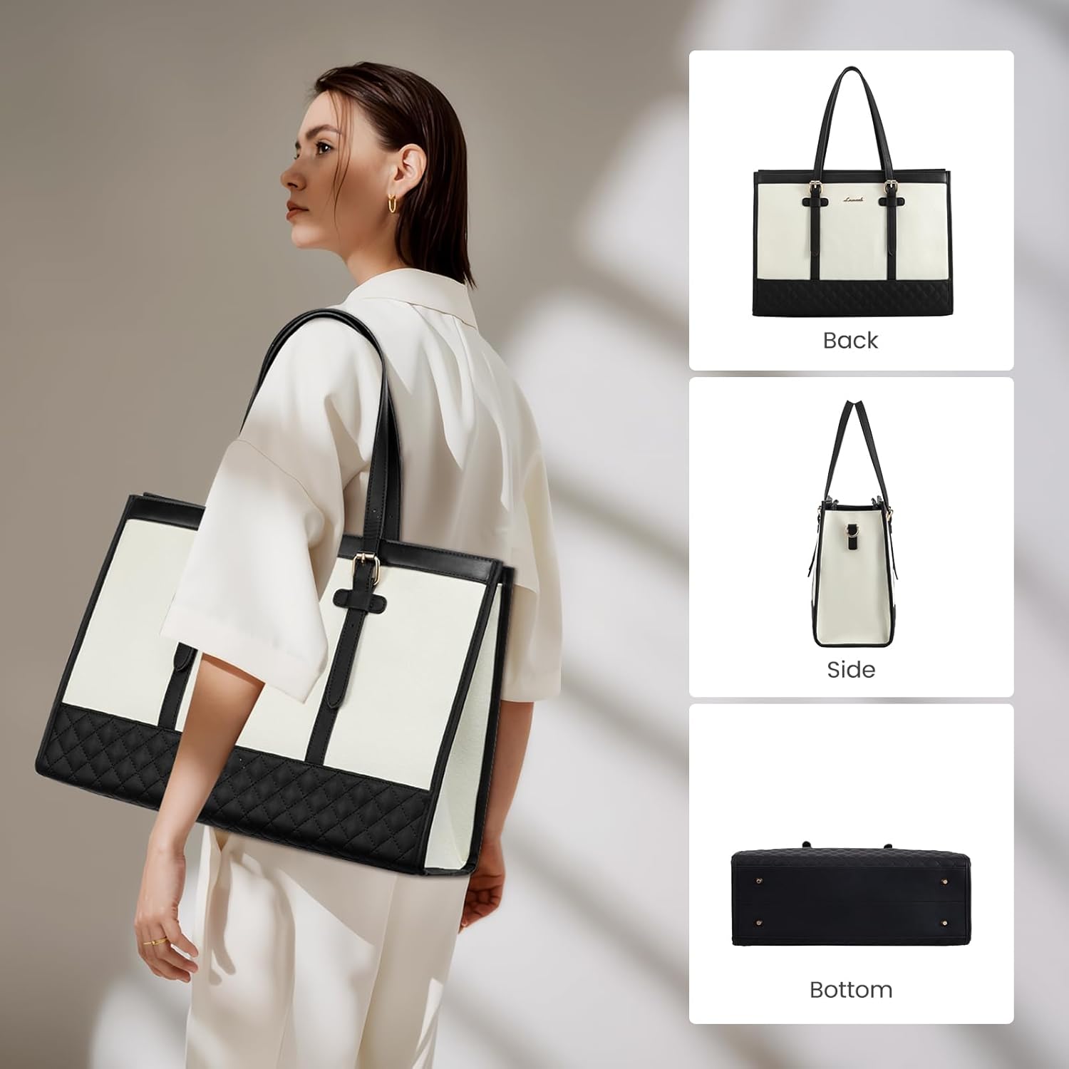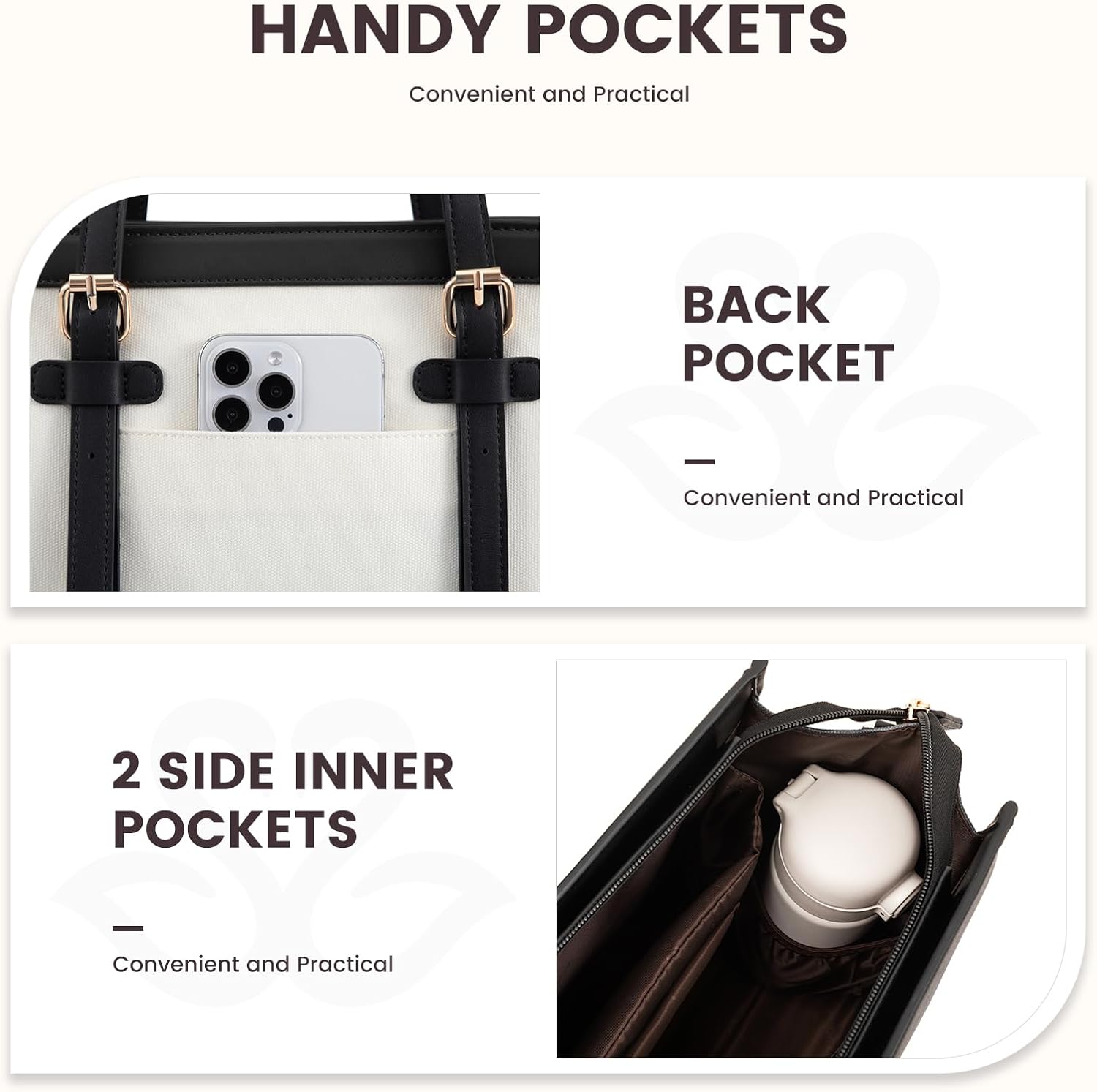 【Grote capaciteit & meerdere compartimenten】: deze laptoptas heeft afmetingen van 41 x 14 x 30 cm, biedt veel ruimte en heeft 2 insteekvakken, 2 sleuven en 1 ritsvak voor kleine voorwerpen zoals mobiele telefoon, portemonnee, make-up, paspoort, enz.