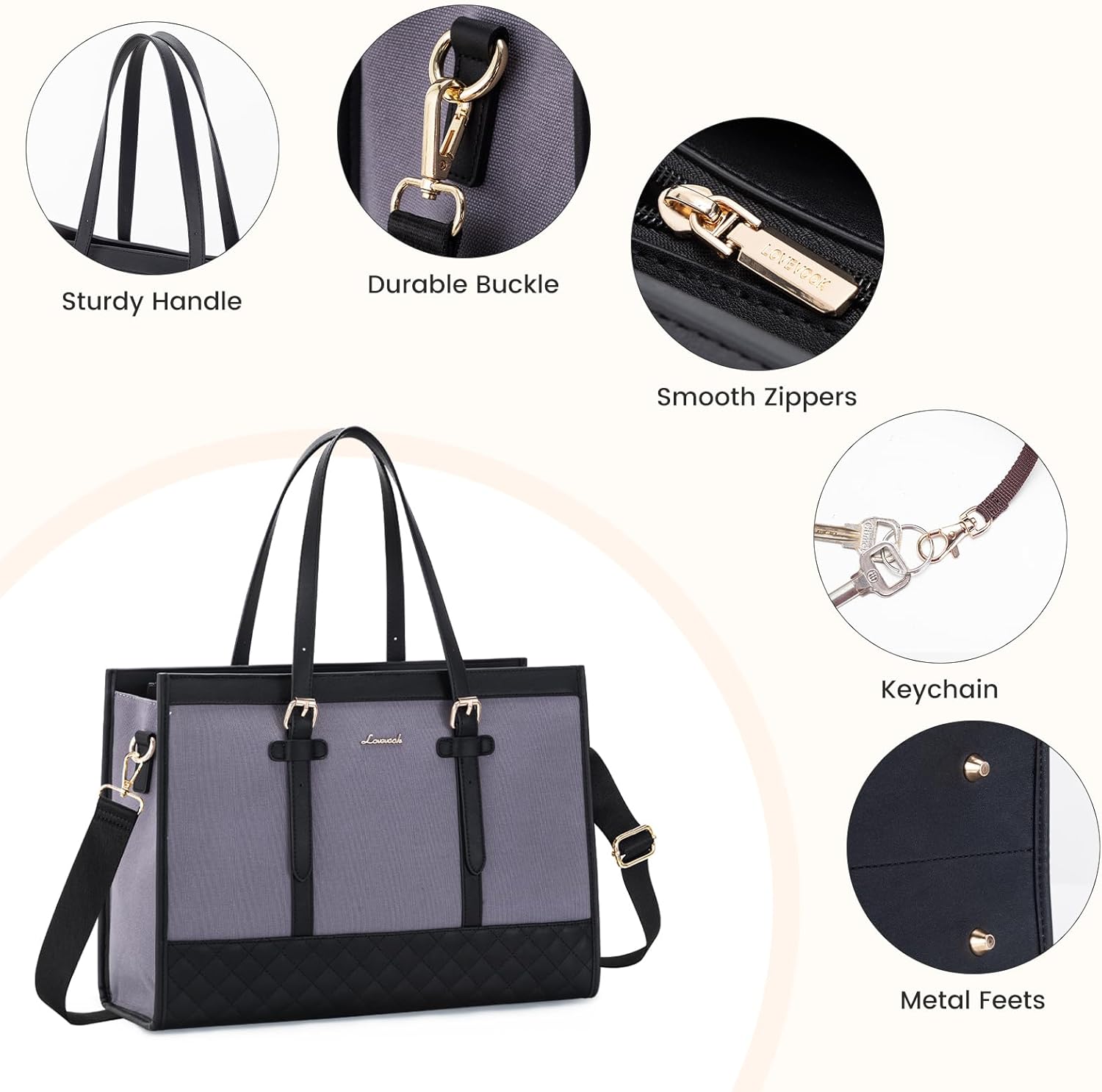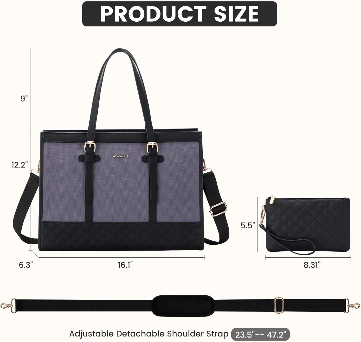 【Grote capaciteit & meerdere compartimenten】: deze laptoptas heeft afmetingen van 41 x 14 x 30 cm, biedt veel ruimte en heeft 2 insteekvakken, 2 sleuven en 1 ritsvak voor kleine voorwerpen zoals mobiele telefoon, portemonnee, make-up, paspoort, enz.