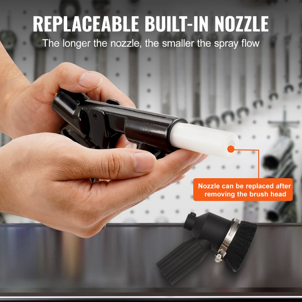 Onze zandstraler is perfect voor hoeken, randen en gaten en levert nauwkeurige zandstraalresultaten. Dit maakt het een veelzijdig hulpmiddel voor gedetailleerde oppervlaktebehandelingen. Het is gemaakt van verdikt Q195-staal en is bestand tegen hoge luchtdruk zonder te vervormen.