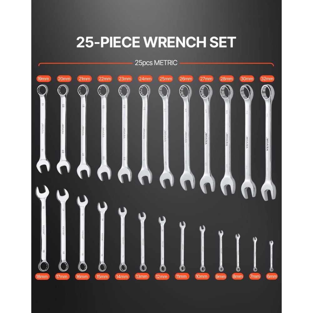 VEVOR sleutelset ratelsleutelset 25-delig metrisch 6-32mm werkplaats