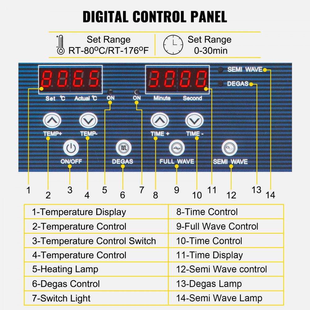 Krachtige constante reinigingswerktijd: 0-30 minuten (instelbaar); Kan de temperatuur van de oplossing ook snel opwarmen tot 0-80℃ (instelbaar). Microchip gestuurde verwarmings- en reinigingscyclus. Met LED-scherm en knoppen om modi te bekijken en te selecteren.