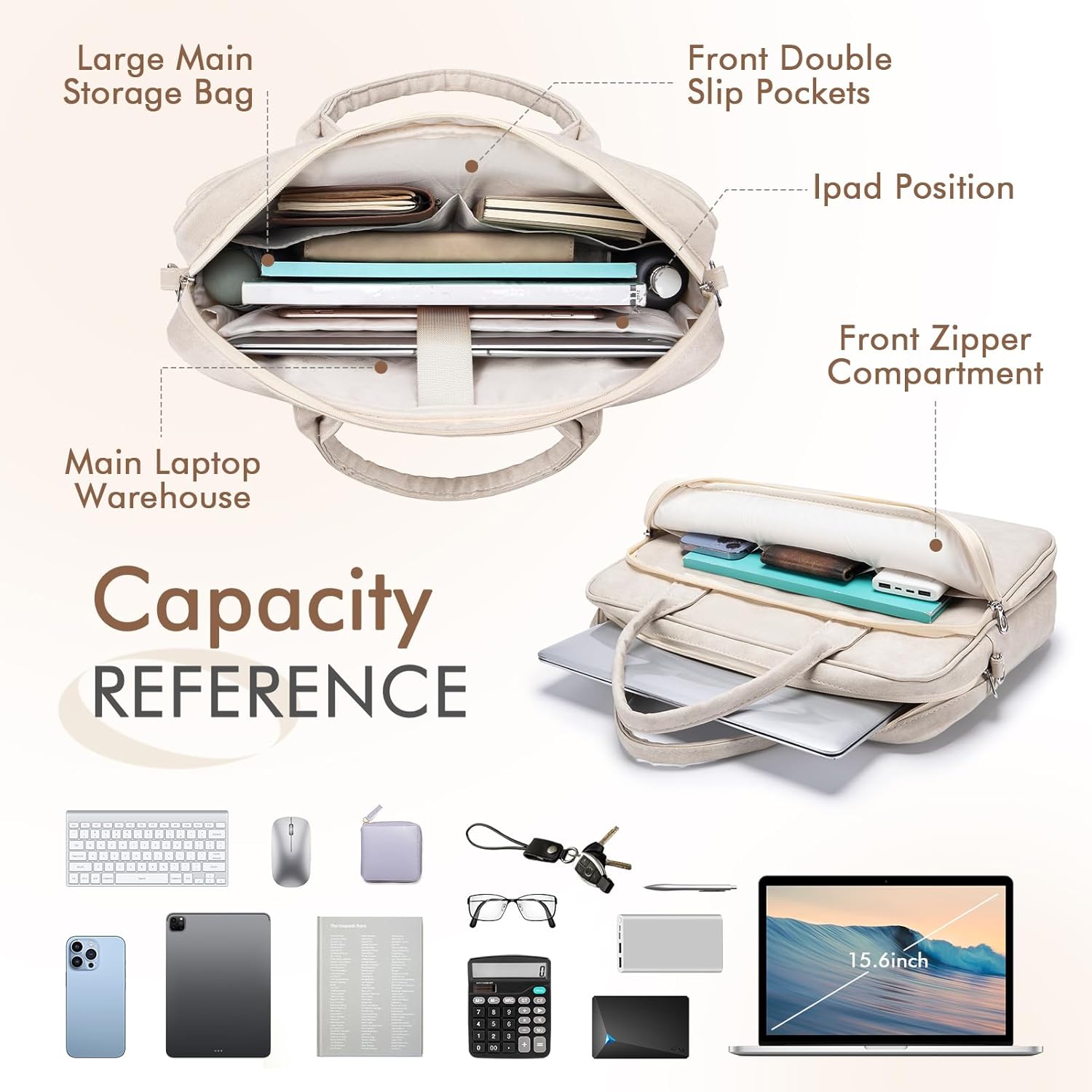 【Geschikt voor verschillende mensen】Leren laptophandtas, klassiek denimontwerp voor dames, en klassieke kleuren zijn geschikt voor verschillende kledingcombinaties. Het ontwerp met meerdere compartimenten met grote capaciteit voldoet aan de behoeften van school-, werk- en zakenreizen.
