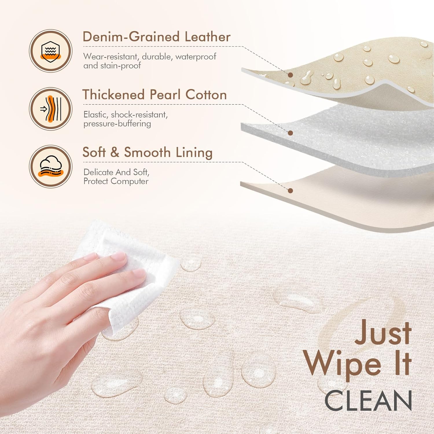 【Drie lagen verdikte bescherming】De eerste laag van de leren aktetas is gemaakt van denimleer, dat slijtvast, duurzaam, waterdicht en afwasbaar is. De tweede laag is gemaakt van verdikt parelkatoen, dat elastisch, schokbestendig en drukabsorberend is. De derde laag bestaat uit een zachte en gladde binnenvoering, die fijn en zacht is om computers en tablets te beschermen.
