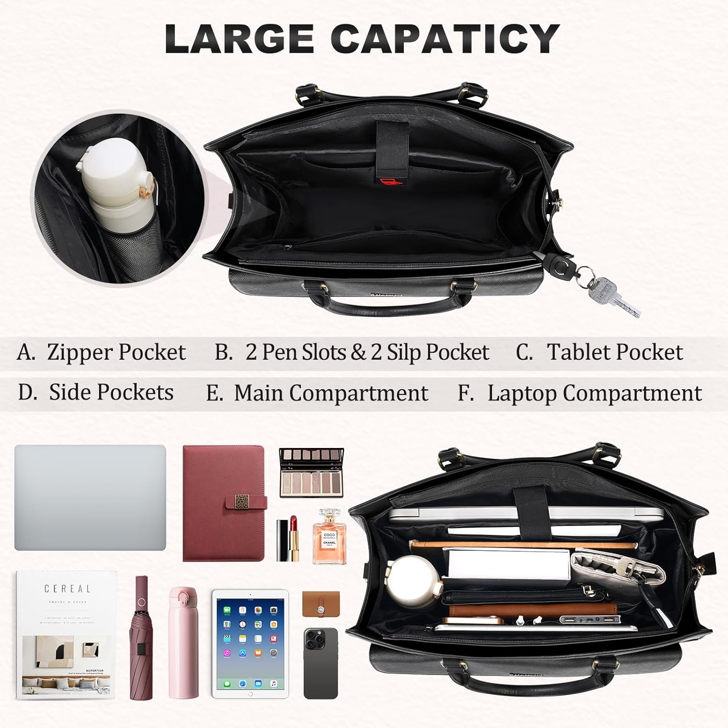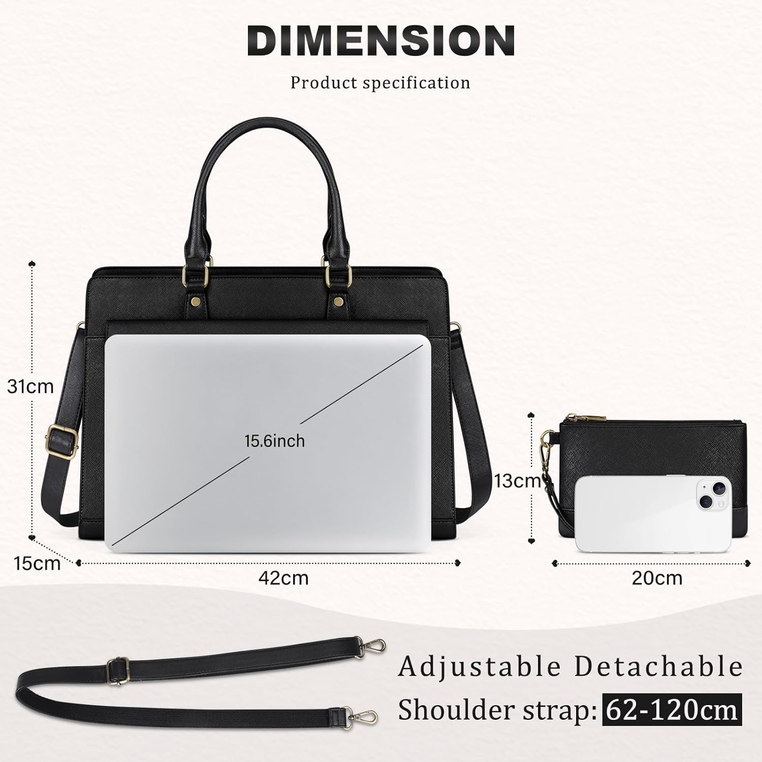 【Perfecte afmetingen】Afmetingen laptoptas: 42 (L) x 15 (B) x 31 (H) cm. Gewicht: 1,45 kg. De verstelbare afneembare schouderriem kan van 62 cm tot 120 cm worden ingesteld en biedt een groot aantal draagstijlen voor je reiscomfort. Deze werktas voor dames past op de meeste laptops van 13, 14, 15, 15,6 inch.