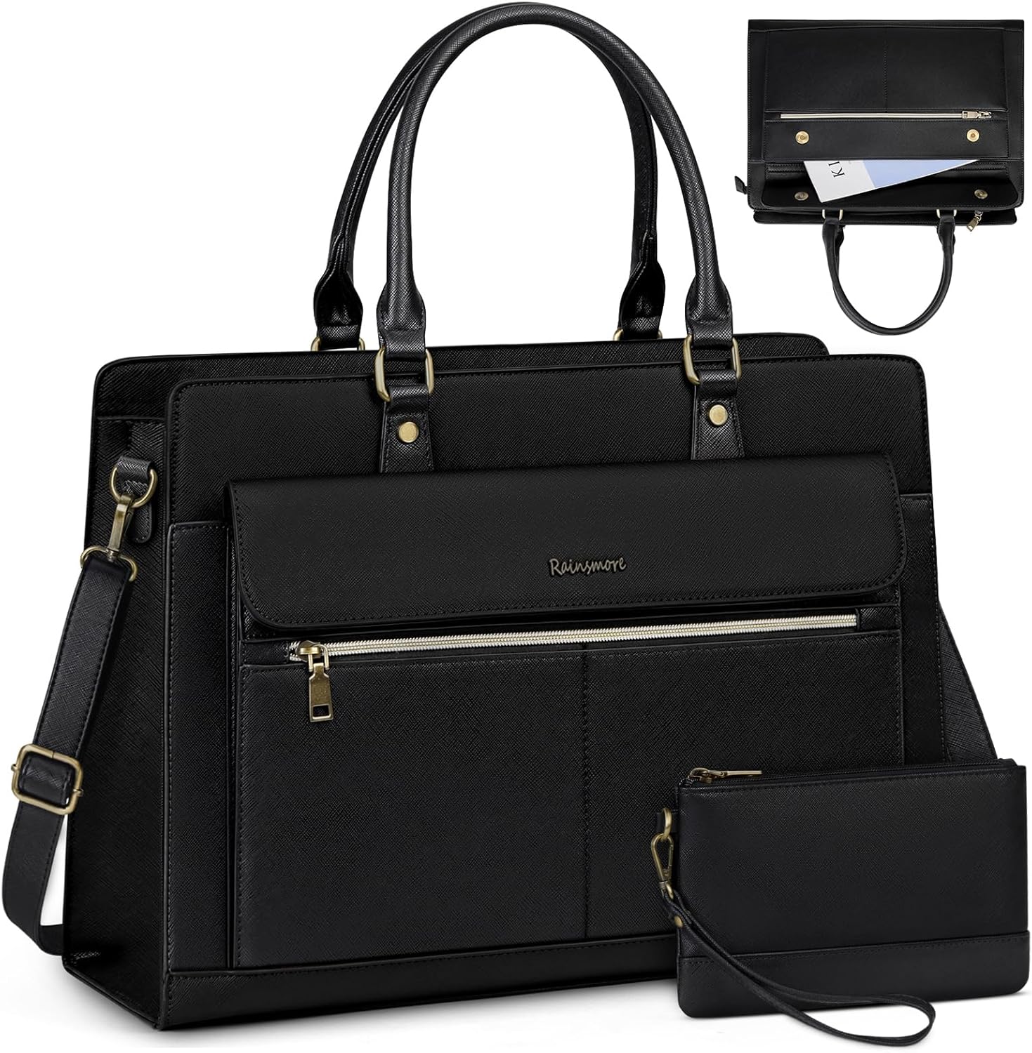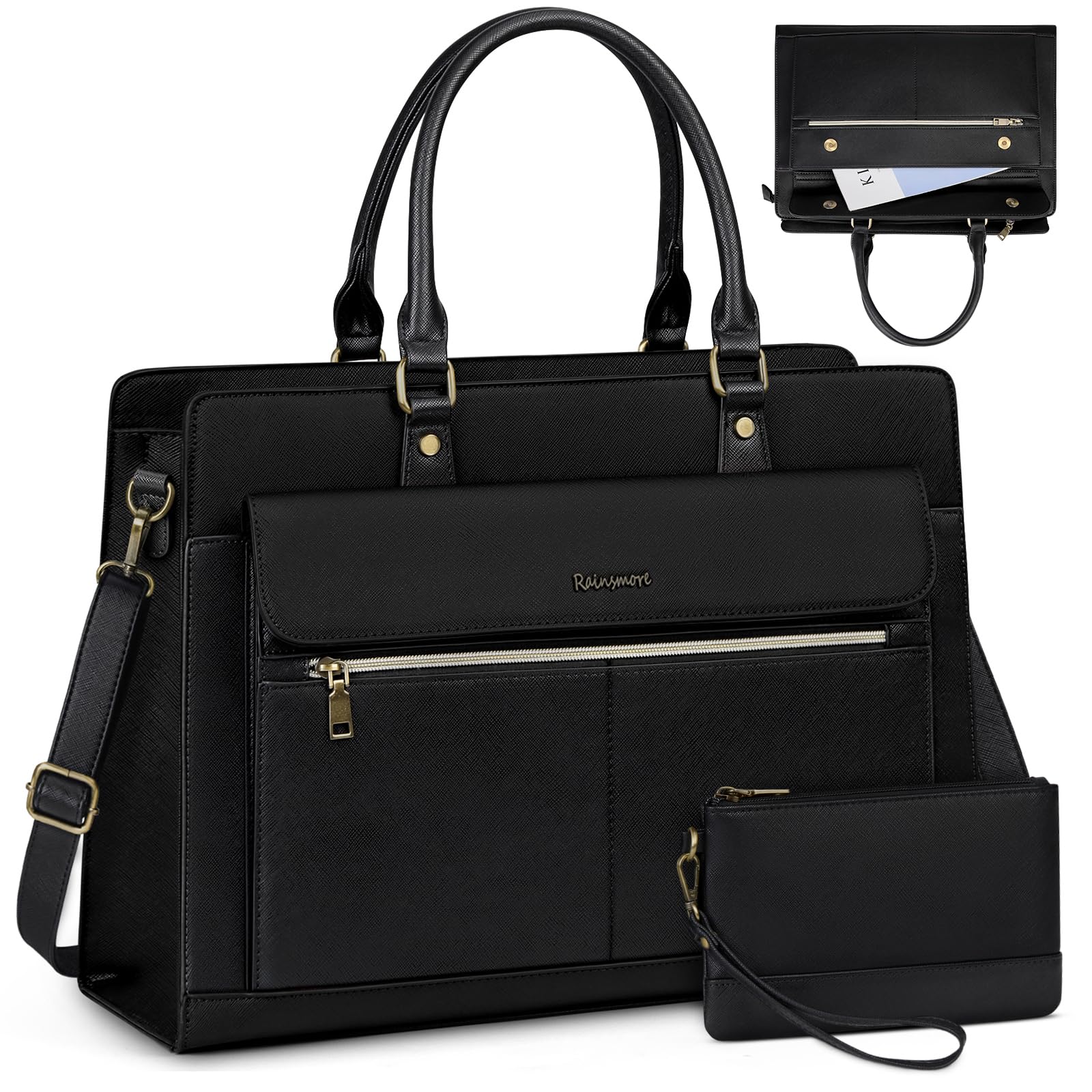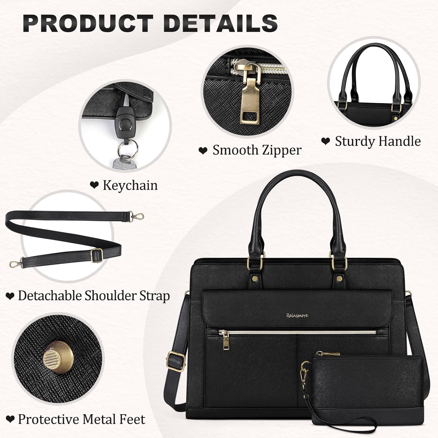 Gehumaniseerd design: afneembare clutch-tas + multifunctionele tassen voor dames, ontworpen voor vrouwen, meerdere interne en externe vakken voor het organiseren van boeken, documenten, mobiele telefoons, sleutels en cosmetica. Zeg vaarwel tegen de ouderwetse aktetas, er is een modieuze effen tas die op je wacht. Ideaal voor werk, school, zakenreizen, winkelen of reizen.