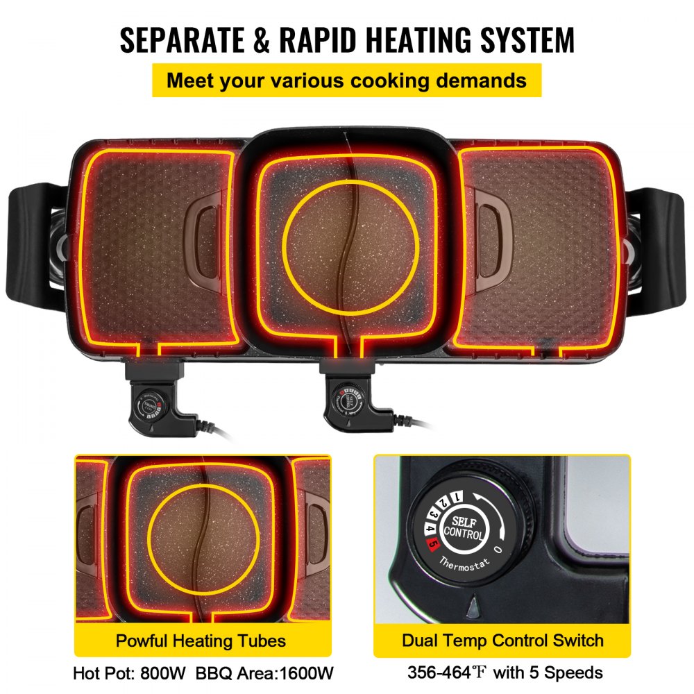 VEVOR 2 in 1 Bbq Grill Hete Pot 2400W Multifunctionele Elektrische Grill Hot Pot 73,5x26,5x19 cm Grill Indoor Hot Pot van Gegoten Aluminium en Gehard