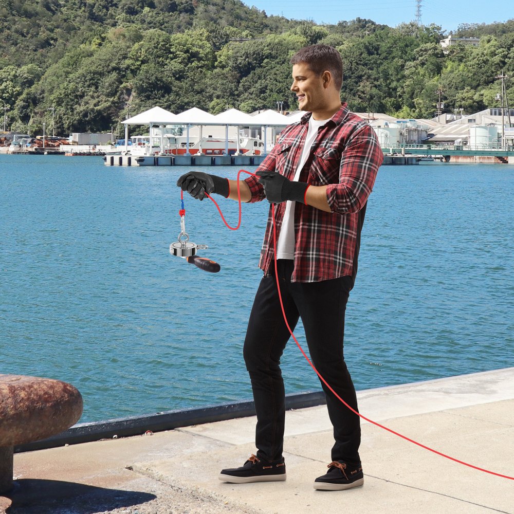 • Alles-in-één kit: Ben je de onvolledige visuitrusting beu? Kies onze magneetvisset, die bestaat uit een 20 meter lang sterk touw, waterdichte antisliphandschoenen, schroefdraadborgmiddel en een grijphaak - geen extra aankopen vereist. U kunt onmiddellijk beginnen met professioneel schatzoeken.