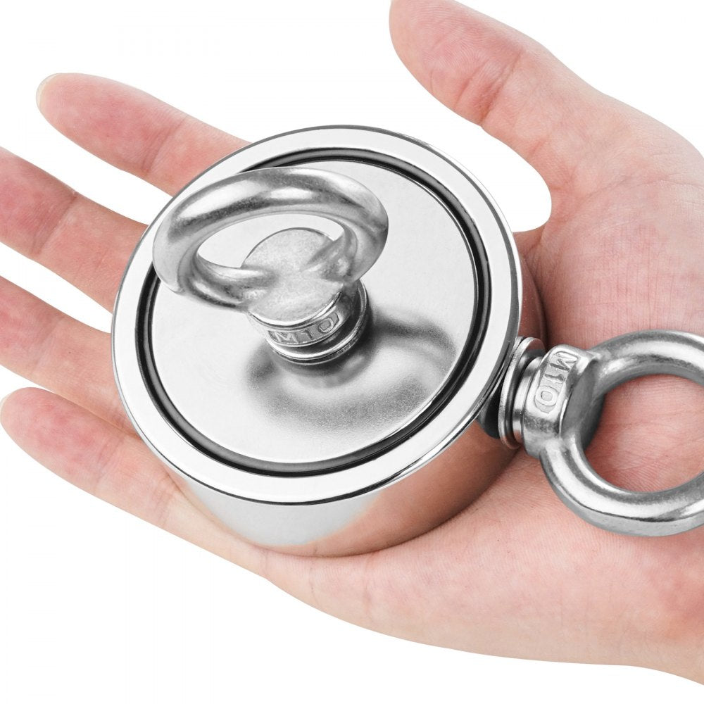 • Dubbelzijdige sterke magneet: het dubbelzijdige vismagneetontwerp van hoogwaardig N35-neodymiummateriaal verbetert de functionaliteit aanzienlijk en biedt een maximale trekkracht tot 454 kg (1000 lbs). U kunt gemakkelijk verloren sleutels of onderwaterschatten terugvinden.