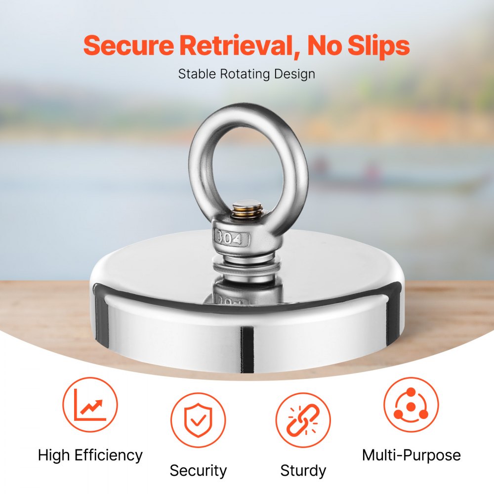 • Veelzijdige toepassing: deze supersterke magneet is ideaal voor schatzoekers in de open lucht en professionele bergers in rivieren, meren, vijvers en andere omgevingen. Het kan ook worden gebruikt om metalen voorwerpen in magazijnen of garages te beveiligen of op te slaan.