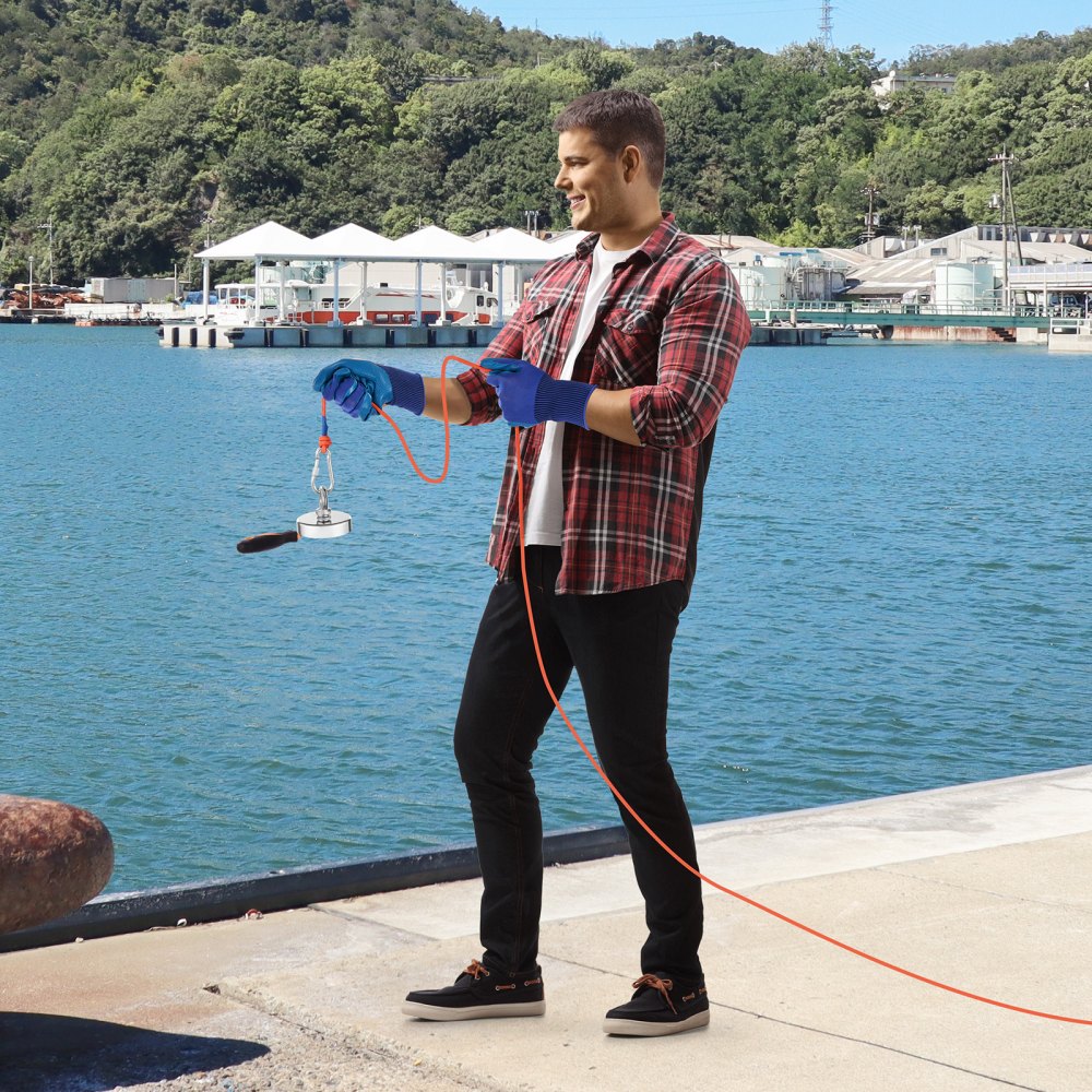 Deze vismagneet maakt gebruik van N35 neodymium-ijzerboriummagneten met een trekkracht van 454 kg. Het is in staat om gemakkelijk metalen voorwerpen te bergen, zelfs in complexe of moeilijk zichtbare onderwateromgevingen, wat een krachtige en efficiënte herstelervaring oplevert.