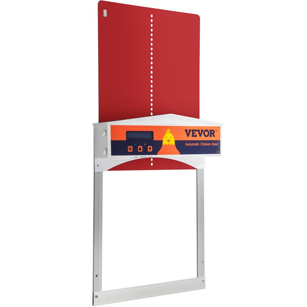VEVOR automatische kippenhokdeur met rood paneel en digitaal display, schroeven inbegrepen.