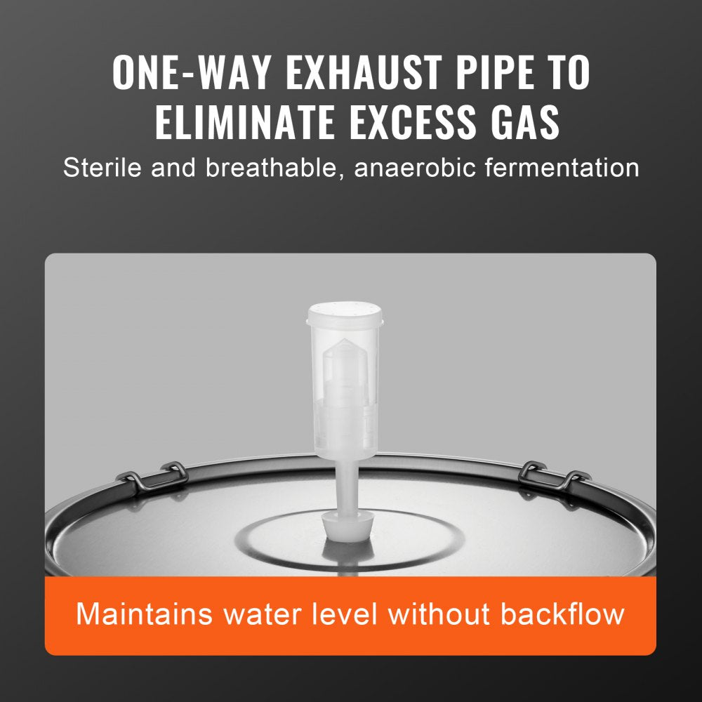 • Steriel en ademend: de bovenkant van het deksel kan worden uitgerust met een uitlaatpijp die in enkele seconden kan worden bevestigd. De eenrichtingsventilatie zorgt ervoor dat luchtbellen in het vat kunnen ontsnappen, en het injecteren van een kleine hoeveelheid water voorkomt terugstroming, waardoor een steriele, ademende en zuurstofvrije gisting wordt bereikt.