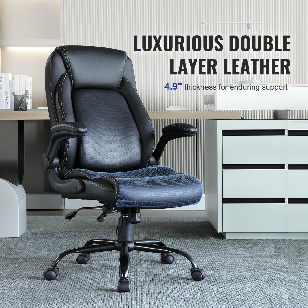 VEVOR directiestoel met ademend leer, verdikt sponsmateriaal en opklapbare armleuningen voor een modern kantoor.