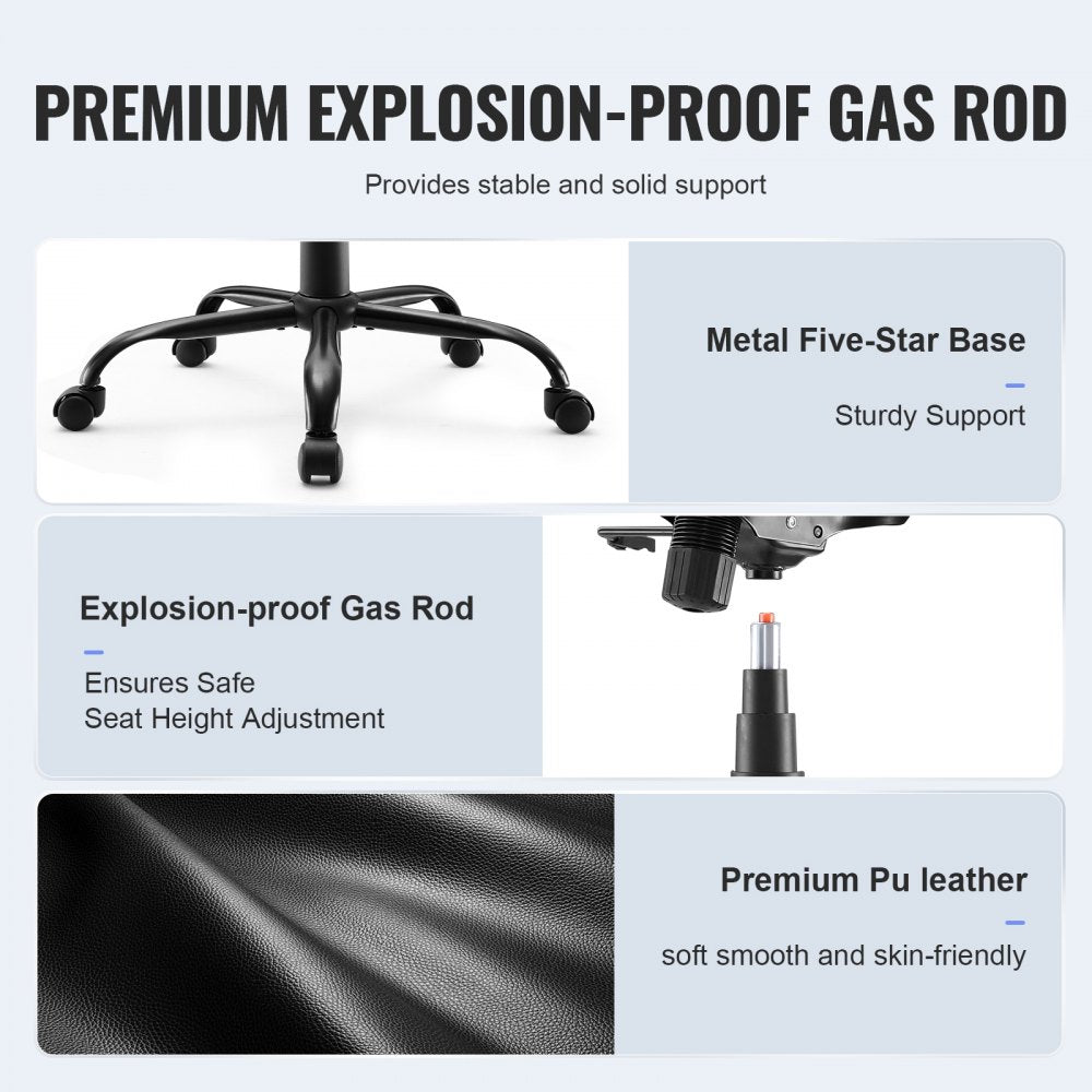 VEVOR bureaustoel PU leer zwart directiestoel met in hoogte verstelbaar 0-100 mm, bureaudraaistoel, draagvermogen 136,07 kg, directiestoel bureaustoel draaistoel bureaustoel bureaustoel