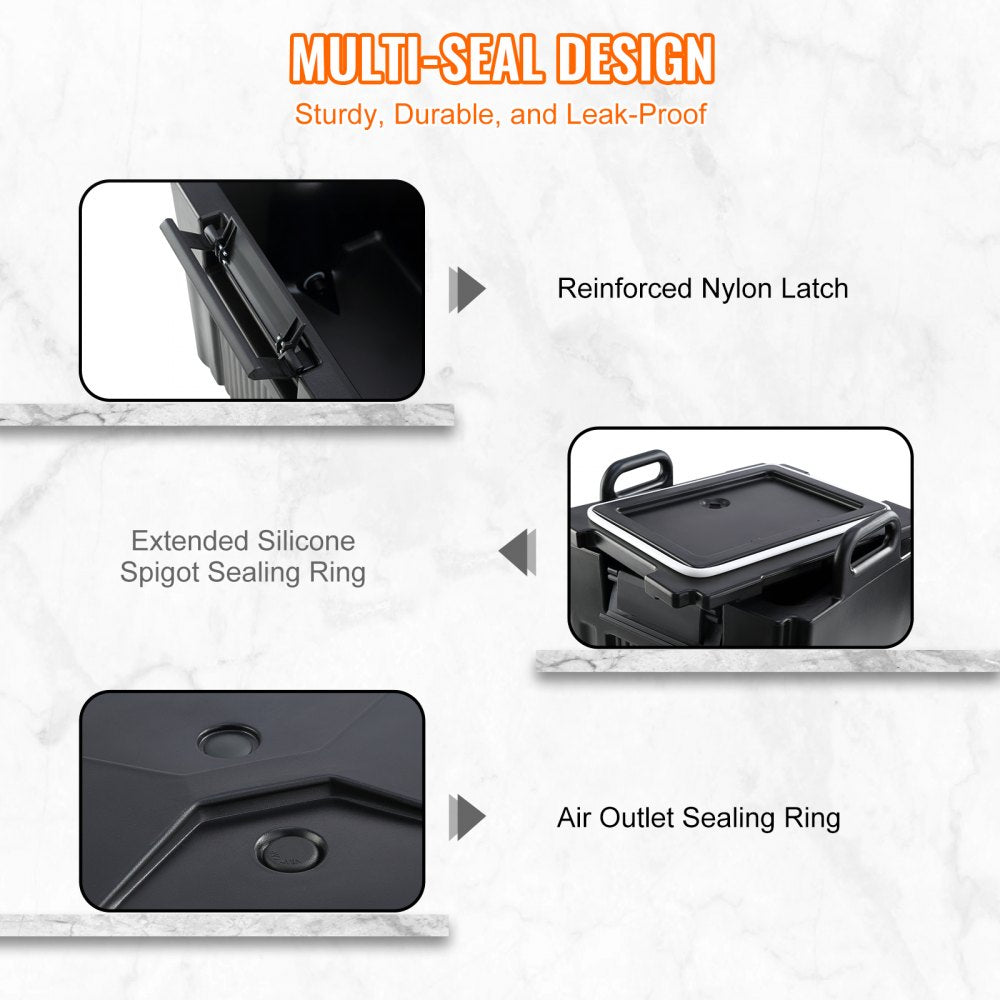 Of het nu gaat om sap, koffie, melk of thee - onze drankdispenser van 37,6 liter houdt alles vast, zowel warm als koud. Het beschikt over een binnen- en buitenbehuizing gemaakt van LL9450UP en een 30 mm dikke PU-schuimlaag die uw drankjes meer dan 10 uur isoleert.