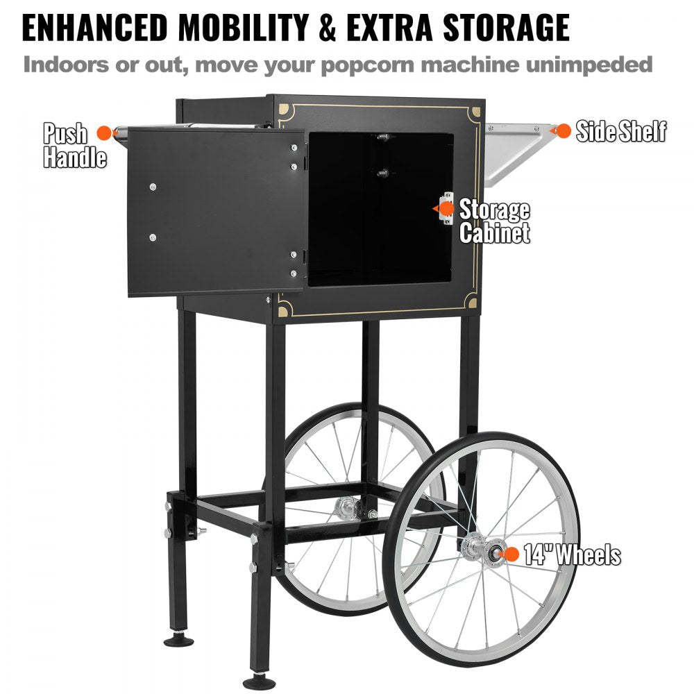 VEVOR popcornmachine popcornmachine met trolley popcornmaker 850W 8oz 48 kopjes