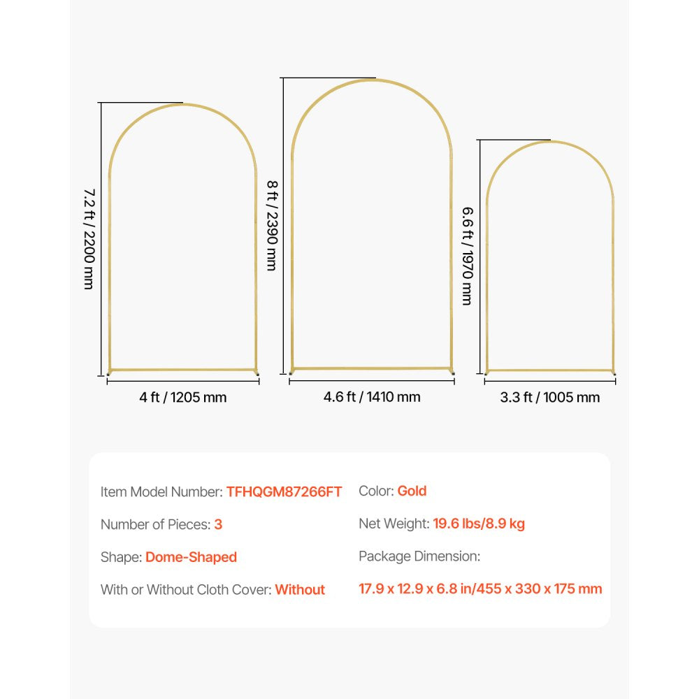 • ELEGANT ONTWERP: Deze trouwboog-achtergrondstandaard bevat 3 gouden boogframes in de maten 8'x4', 8'x4' en 7'x4', waardoor een romantische en elegante sfeer voor bruiloften ontstaat en tegelijkertijd als een populaire achtergrond voor gasten dient foto's.