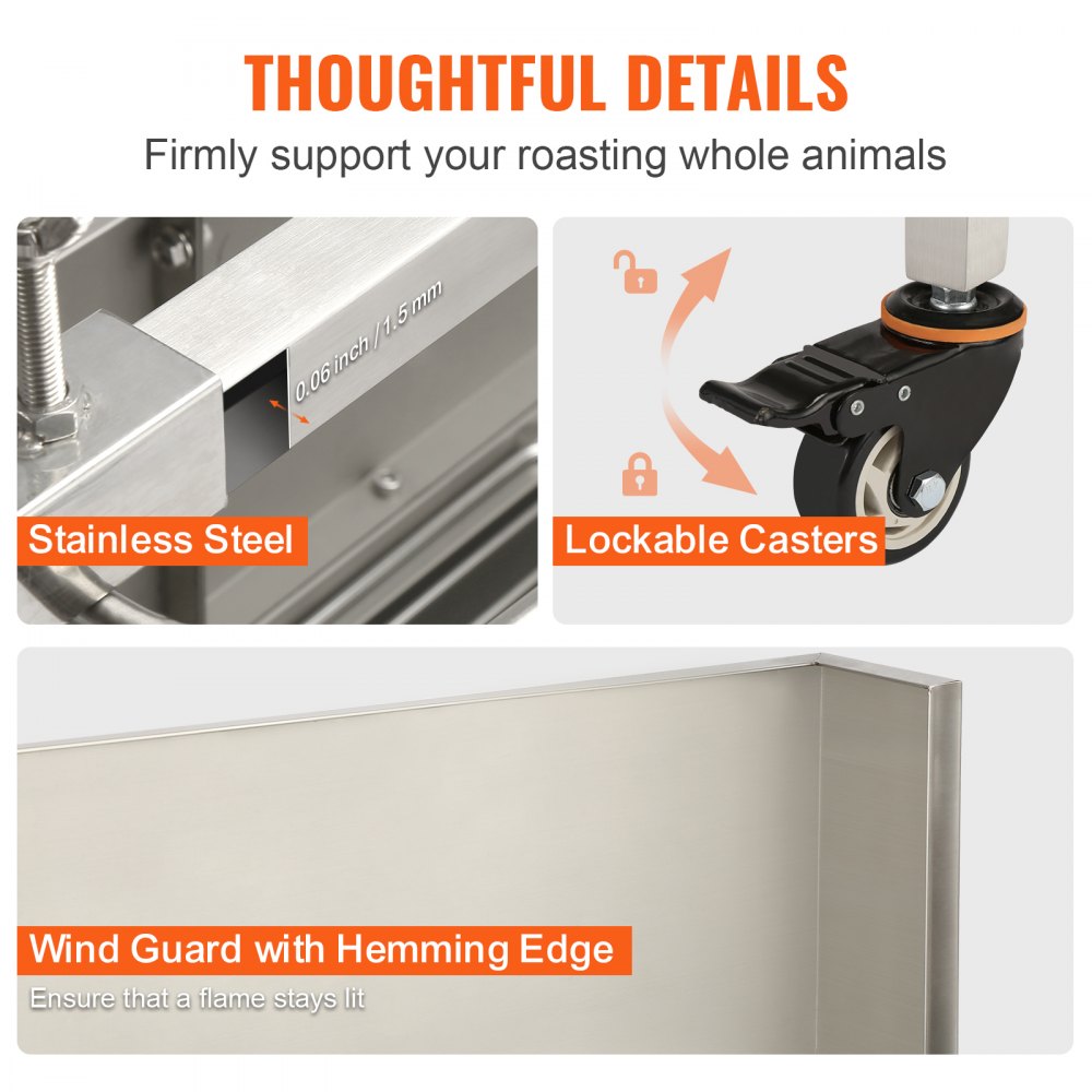 VEVOR speenvarkensgrill lamsgrill 117 cm, 60 kg RVS rotisserie 4-traps in hoogte verstelbaar, 50 W 2 in 1 BBQ rotisserie grill incl. kruidenpot & reinigingsborstel & handvat elektrische grill met baffle