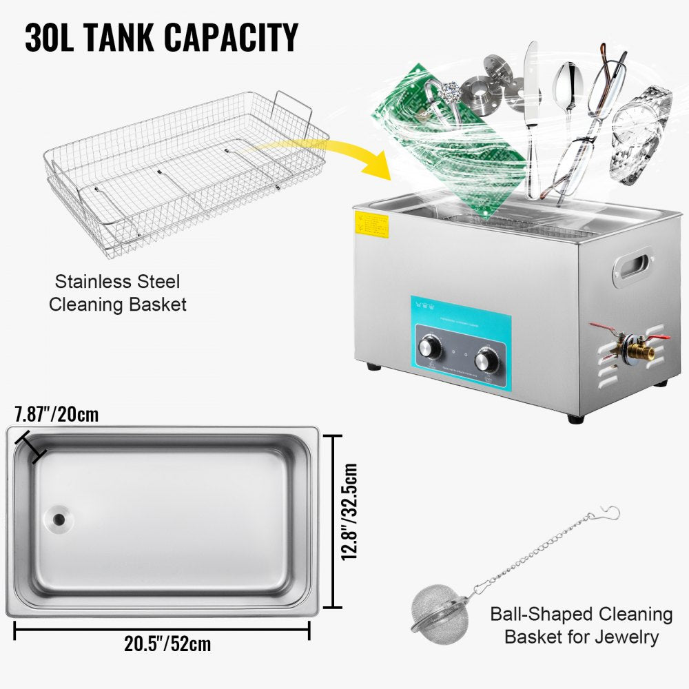 VEVOR Ultrasoon Reiniger 30L Ultrasonic Cleaner with Heater Timer Tub Basket Eyeglasses 40KHz Excellent