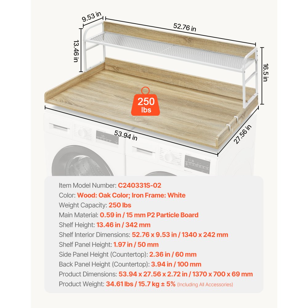 • Hoge kwaliteit: dit aanrecht voor wasmachine en droger is gemaakt van duurzaam P2 CARB-plaat en is hittebestendig, roestbestendig, waterbestendig en gemakkelijk schoon te maken. Met een laadvermogen tot 113 kg is het een betrouwbare keuze voor uw wasruimte.