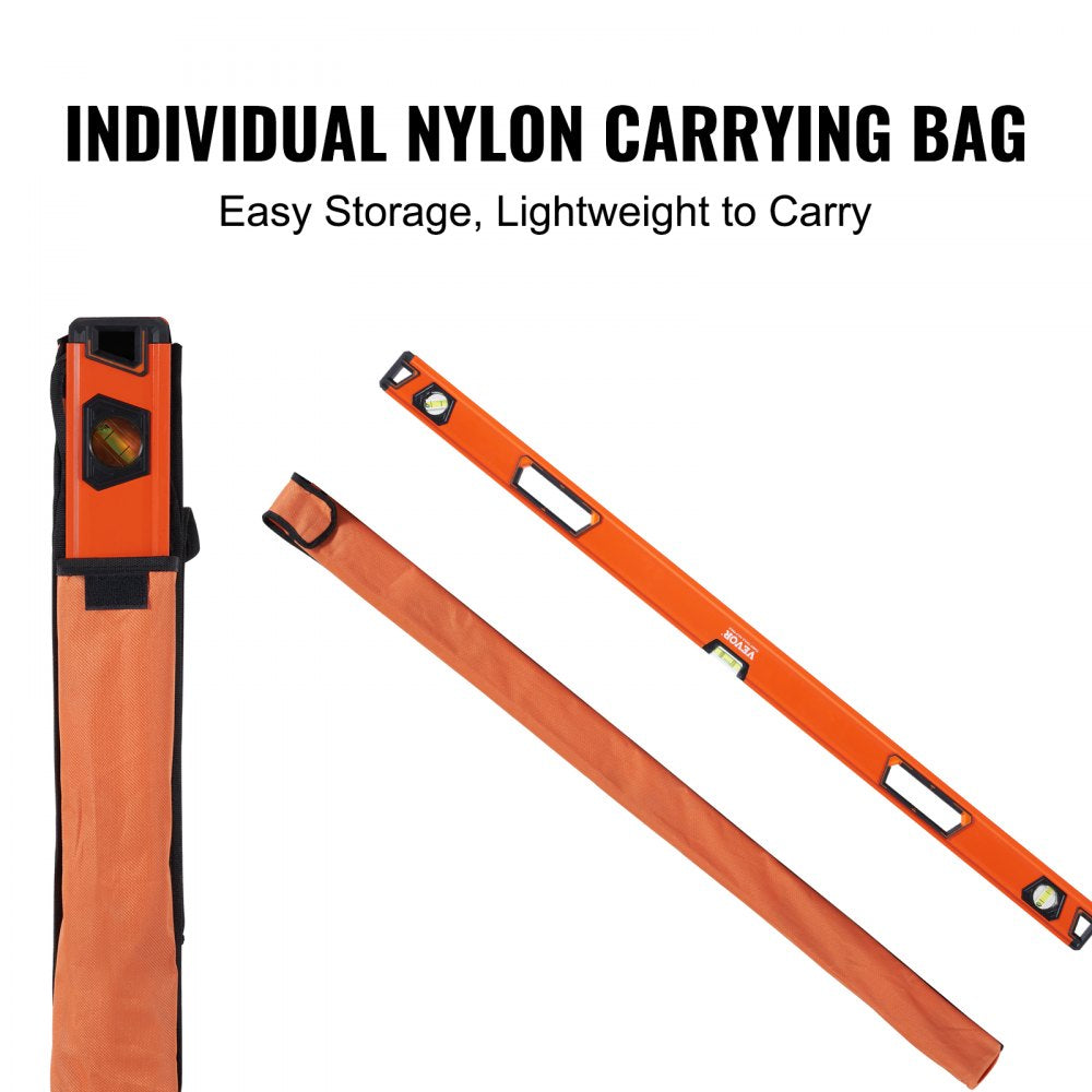 VEVOR waterpas aluminium magnetische waterpas 1222 mm 3 niveaus 45 graden hoek, horizontaal en verticaal 0,5 mm/m incl. nylon opbergtas Professionele waterpas