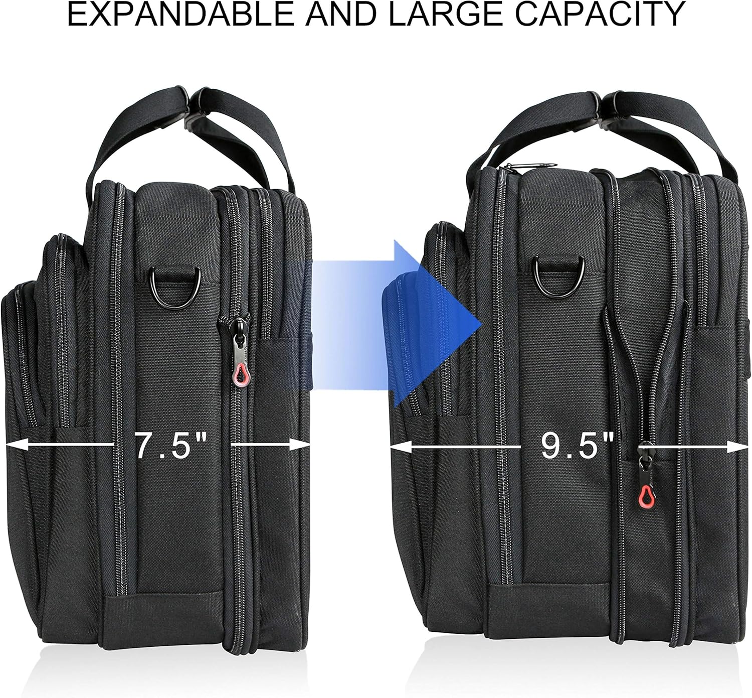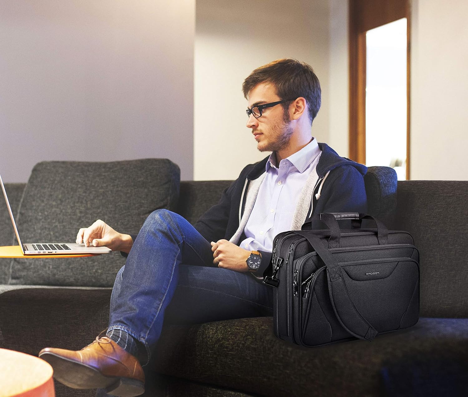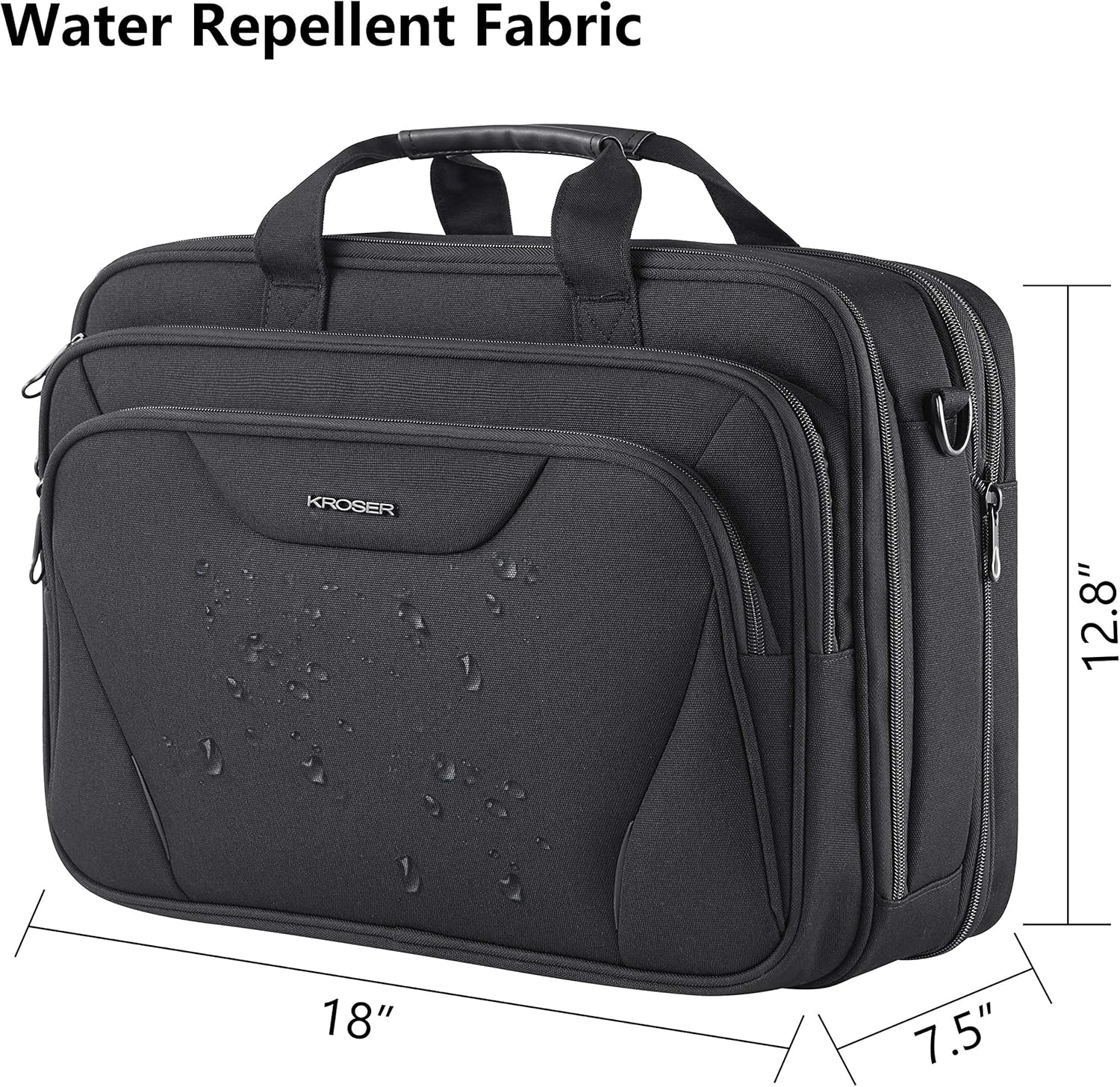 KROSER 18" laptoptas Premium laptop aktetas past tot 17,3 inch laptop uitbreidbare waterafstotende schoudertas computertas voor reizen/zakelijk/school/heren/dames-Zwart