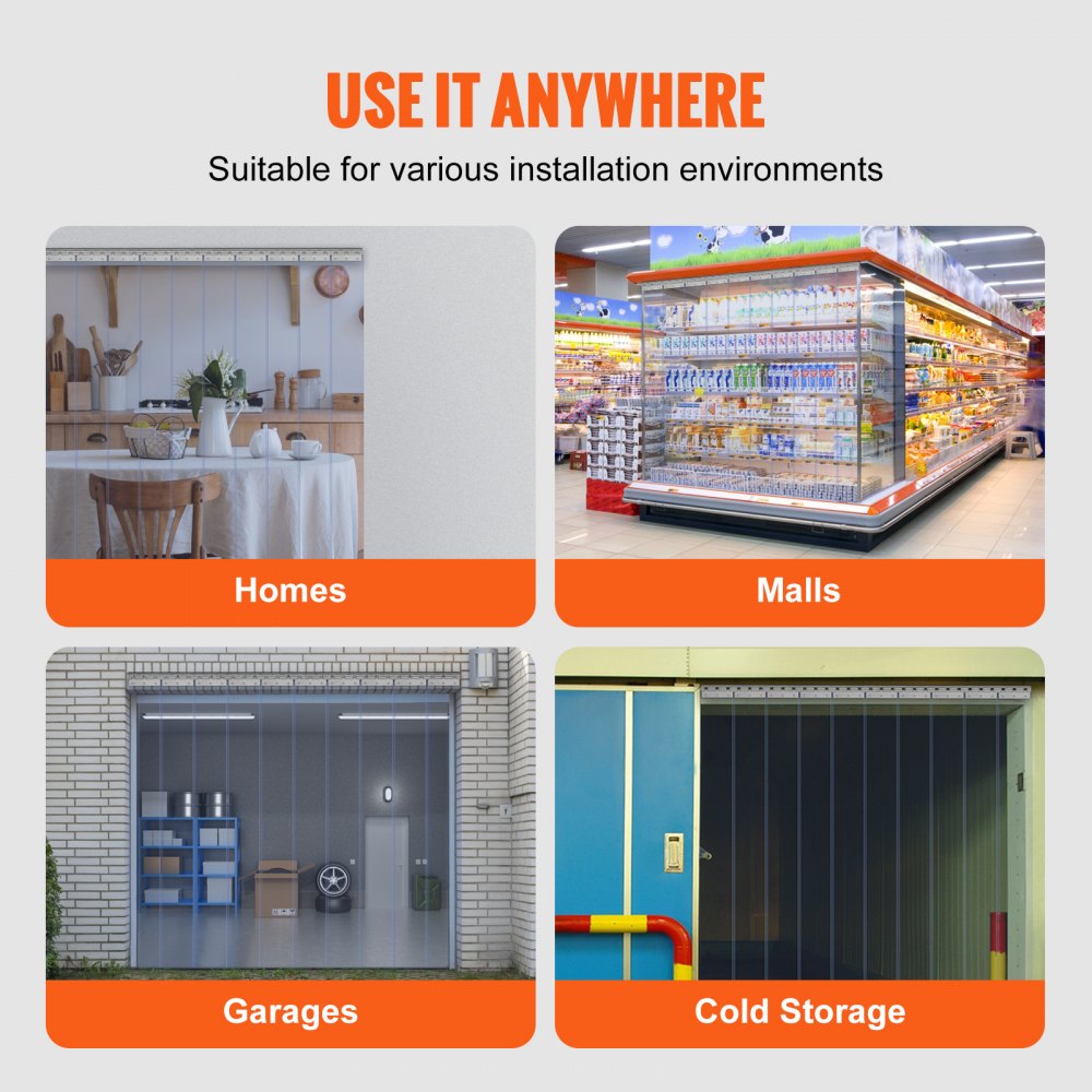 • Duurzaam PVC-materiaal: verwelkom ons PVC-strookgordijn. Het is zacht, elastisch en ontworpen om lang mee te gaan. Het heeft geen onaangename geur en is gemakkelijk schoon te maken - uw normale afwasmiddel is voldoende. Bovendien meet het, eenmaal geïnstalleerd, 152,4 x 213,4 cm (60 x 84 inch) en is het stevig 2 mm dik.