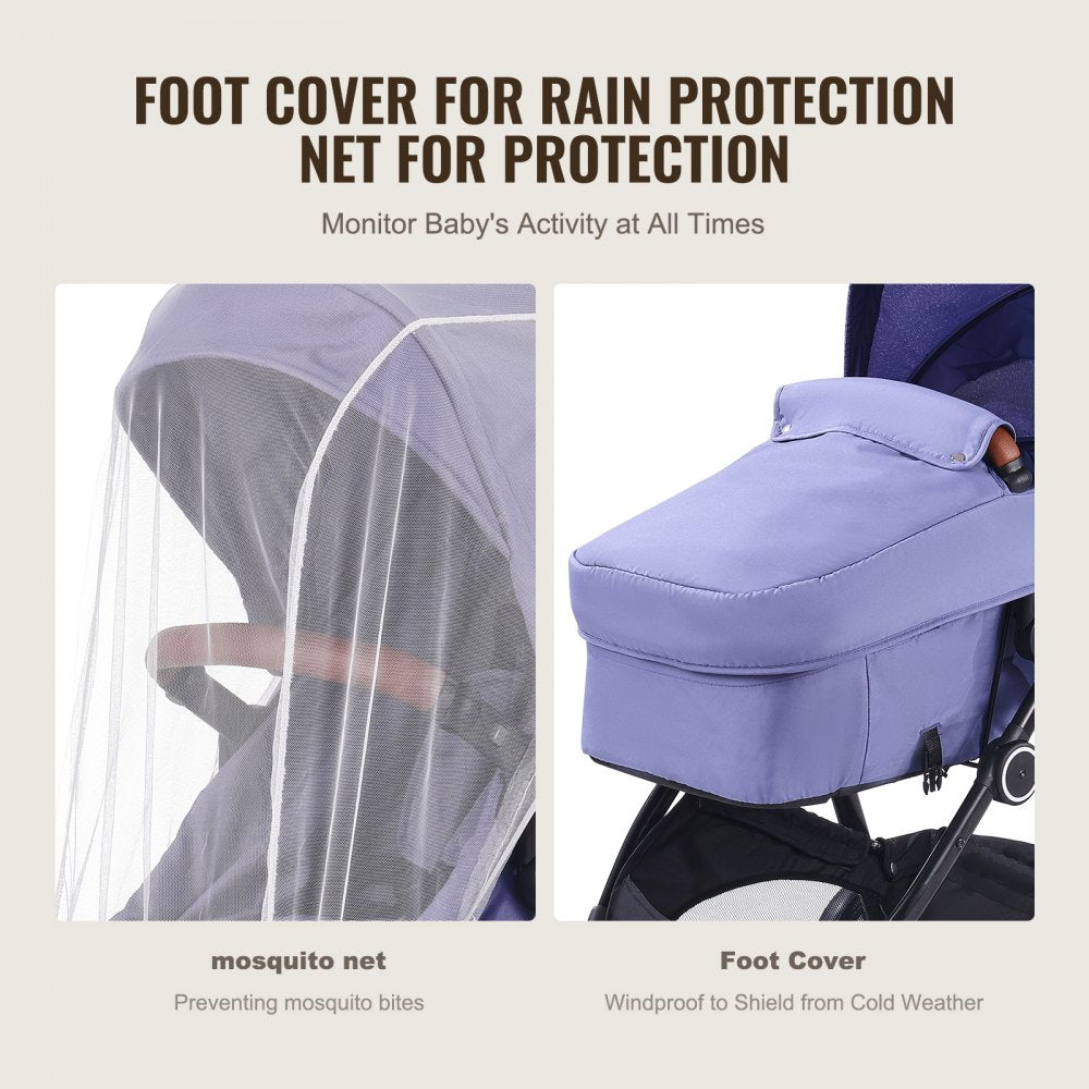 • Geavanceerde functies: Inclusief voetenzak en klamboe. De voetenzak is gemaakt van hoogwaardige stof om de voetjes van je baby te beschermen tegen wind en kou. Het klamboe houdt insecten op afstand en zorgt ervoor dat je baby rustig en comfortabel slaapt.