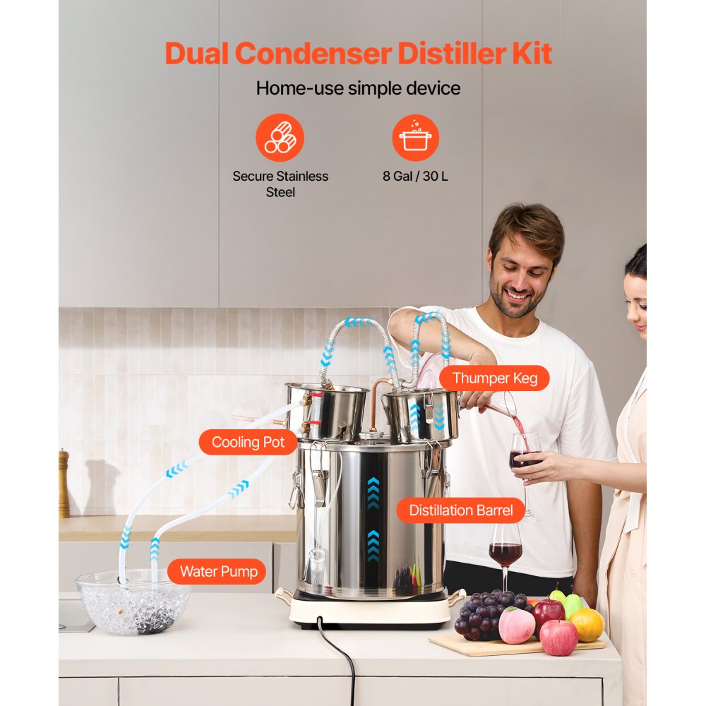 VEVOR alcoholdestillatiesysteem 30L distilleerder waterpomp dubbele condensor