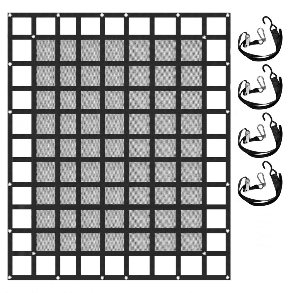 Dit robuuste bagagenet kan worden gebruikt als hangmat of dekennet om spullen in uw garage op hun plaats en uit de weg te houden. Overschrijd niet meer dan 1100 pond/500 kg.