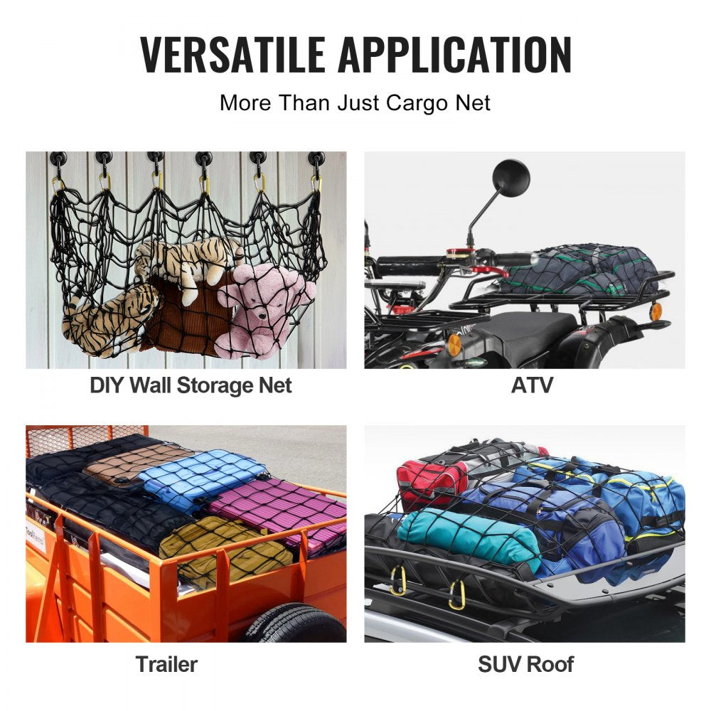 Het VEVOR bungee-bagagenet heeft een draagvermogen tot 90 kg. Het biedt daarom een veiligere en uitgebreidere oplossing voor transportbevestiging.