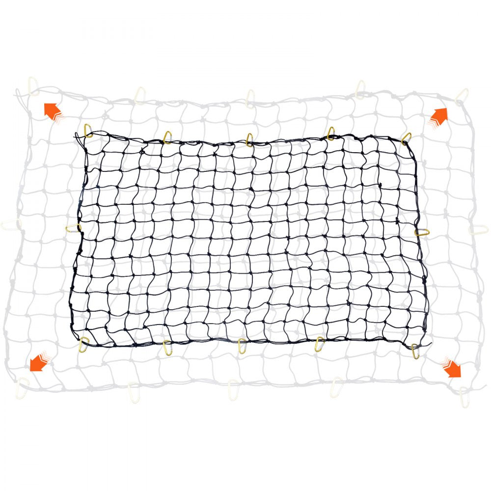 Ons bungee-bagagenet is uitgerust met 12 stevige en duurzame karabijnhaken. Dankzij de talrijke bevestigingspunten kunt u het bagagenet op verschillende plekken in uw voertuig of op andere plekken bevestigen. Het enige wat u hoeft te doen is de karabijnhaken te vergrendelen en los te laten.