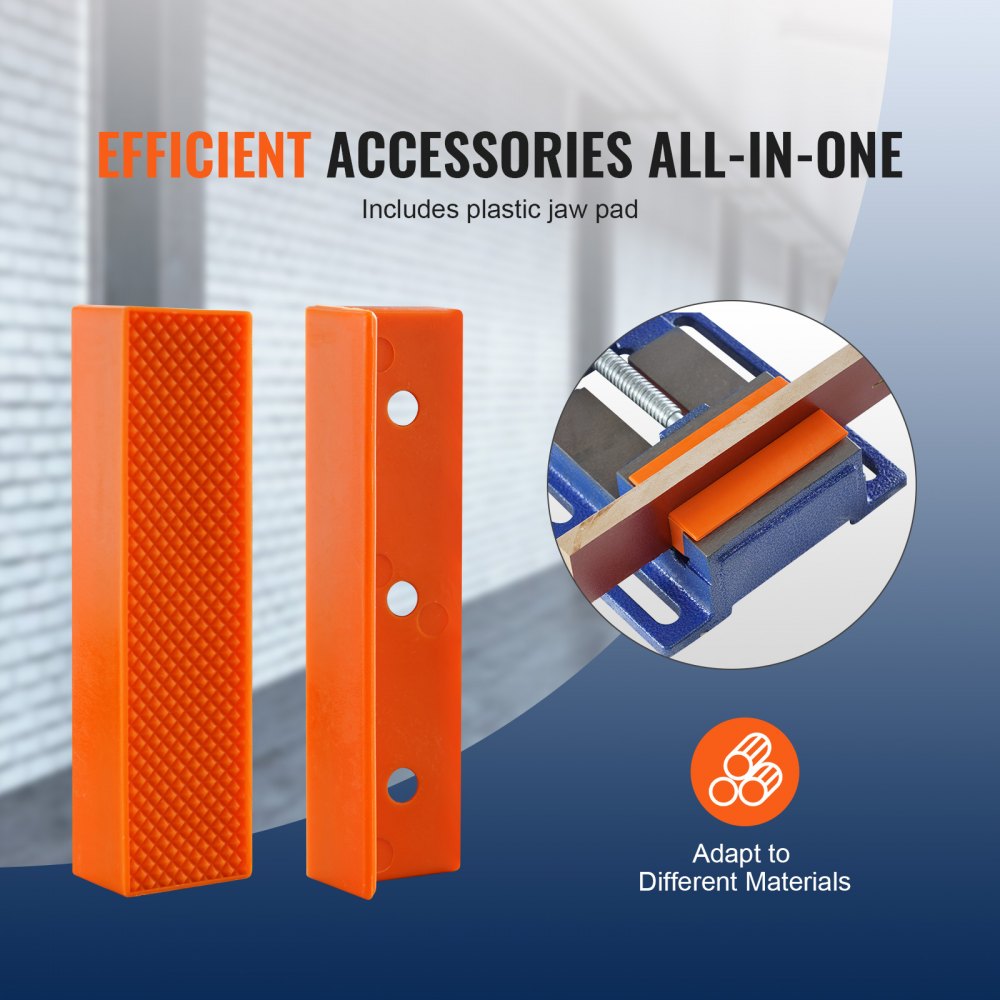 • Meegeleverde accessoires: Als extra accessoires bieden wij kunststof wangkussens aan. Deze doordachte toevoegingen beschermen materiaaloppervlakken tegen krassen of beschadigingen en zorgen voor extra grip. Onze boormachineklem is geschikt voor een verscheidenheid aan materialen en biedt meer flexibiliteit in gebruik. Kies onze bankschroef om taken te vereenvoudigen en tijd en energie te besparen!