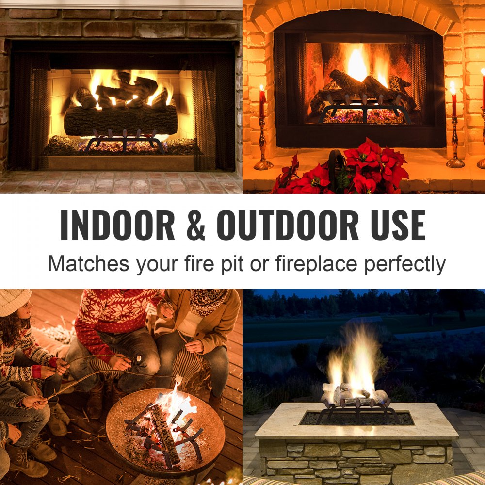 VEVOR brandhoutrooster, 21" zwaar uitgevoerd open haardrooster met 6 steunpoten, 3/4" massieve gepoedercoate stalen staven, houthouder voor binnen- en buitenhaarden