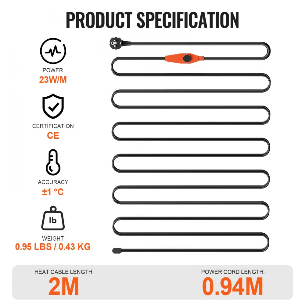 VEVOR buisverwarmingskabel 2m 23W/m buisverwarmingskabel vorstbeveiligingsthermostaat