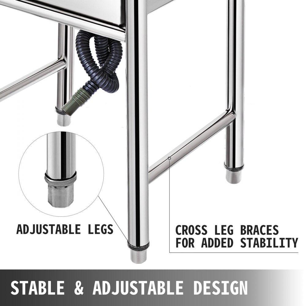 De roestvrij nut gootsteen speciale benen en H-vorm, die uitstekende ondersteuning en verhoogde stabiliteit.