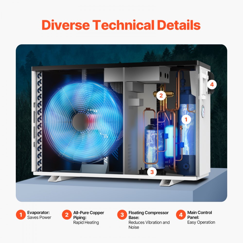 VEVOR elektrische zwembadwarmtepomp 2,51-11,38 kW Energiebesparende variabele frequentie