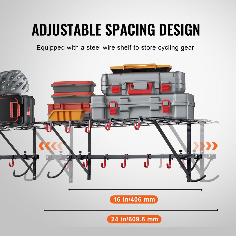 VEVOR fietsenrek met stalen gaasplank, ondersteunt tot 227 kg, inclusief meerdere haken.