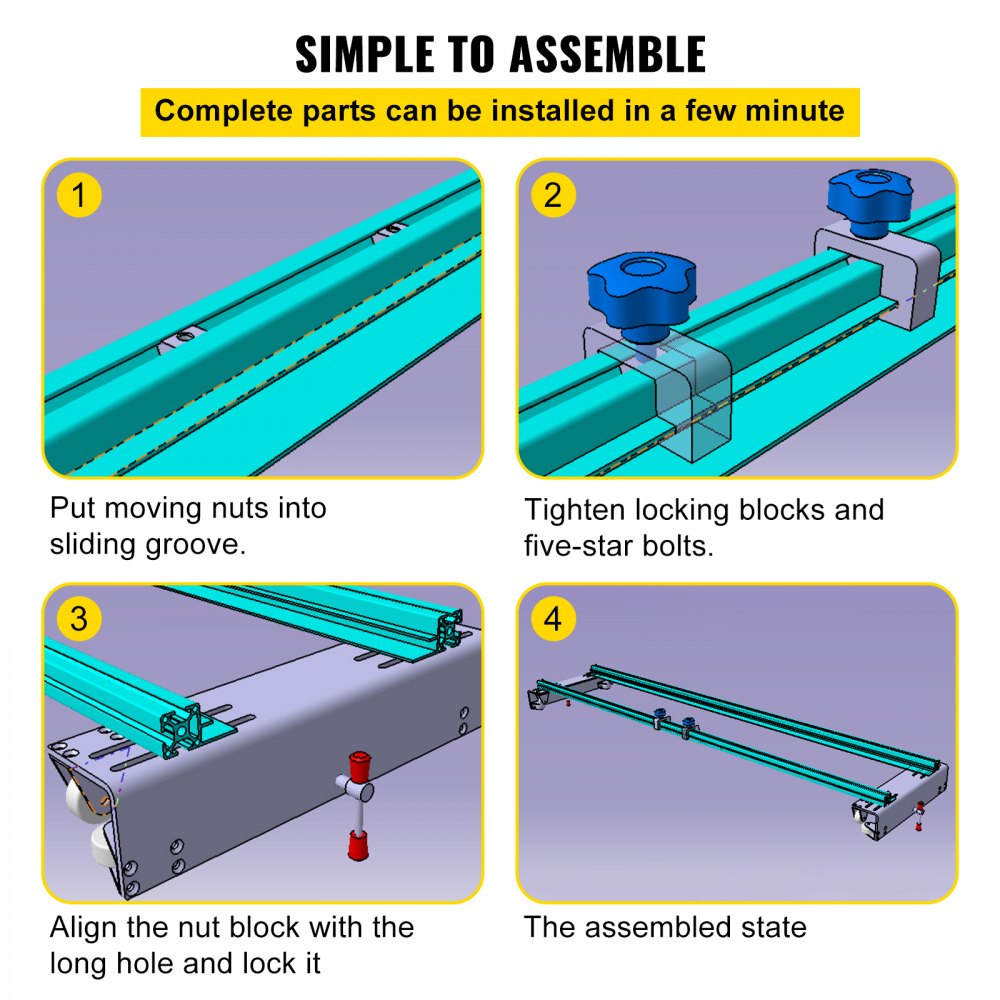 VEVOR freesslede met verstelbare aluminium rails en nivelleringsknoppen.