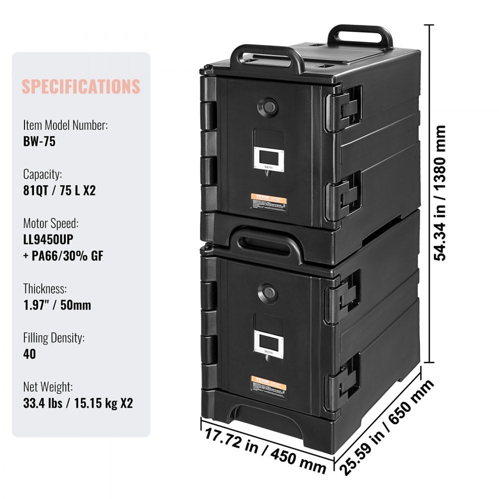 Onze warmhoudbox voor de catering houdt het eten 4 tot 6 uur warm of 3 tot 5 uur koel, zodat de verse ingrediënten veilig bewaard blijven. Het wordt aanbevolen om warme en koude gerechten gescheiden te bewaren.
