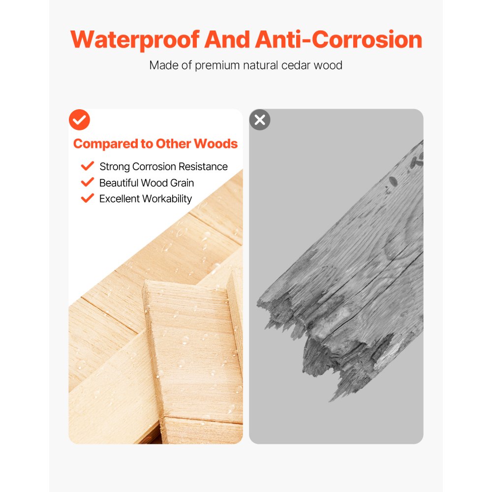 • Stevige constructie: deze buitenopslag is gemaakt van hoogwaardig natuurlijk cederhout en behandeld voor uitstekende waterbestendigheid en corrosiebestendigheid. Het doordachte anti-tip-ontwerp voorkomt effectief dat de kast omvalt en zorgt ervoor dat deze bestand is tegen verschillende klimaatomstandigheden voor langdurig gebruik.