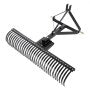 Bij deze robuuste driepunts getrokken verticuteermachine met opzetstuk zijn de stalen tanden stevig in de grond bevestigd, waardoor ze een stevige ondersteuning bieden en het onkruid effectief uit het gazon verwijderen.