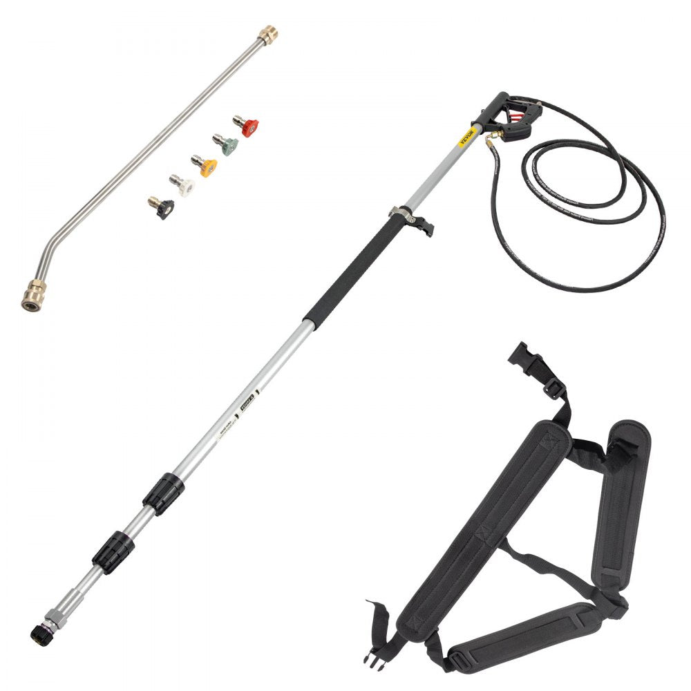 Dit is een uitstekende telescopische staaf voor hogedrukreinigers. Hij kan hogedrukwater sproeien om snel de muur, grond, raam, auto's, etc. schoon te maken. Hij is in lengte verstelbaar met sloten en heeft een verlengstang en vijf mondstukken. Een must-have voor dagelijkse schoonmaakklussen.