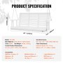 VEVOR Hollywood schommel cederhout, 1370x710x600mm, terrasschommel voor erf en tuin, verbeterd draagvermogen van ca. 400 kg, robuuste schommelstoelbank met ophangkettingen voor buitengebruik, wit