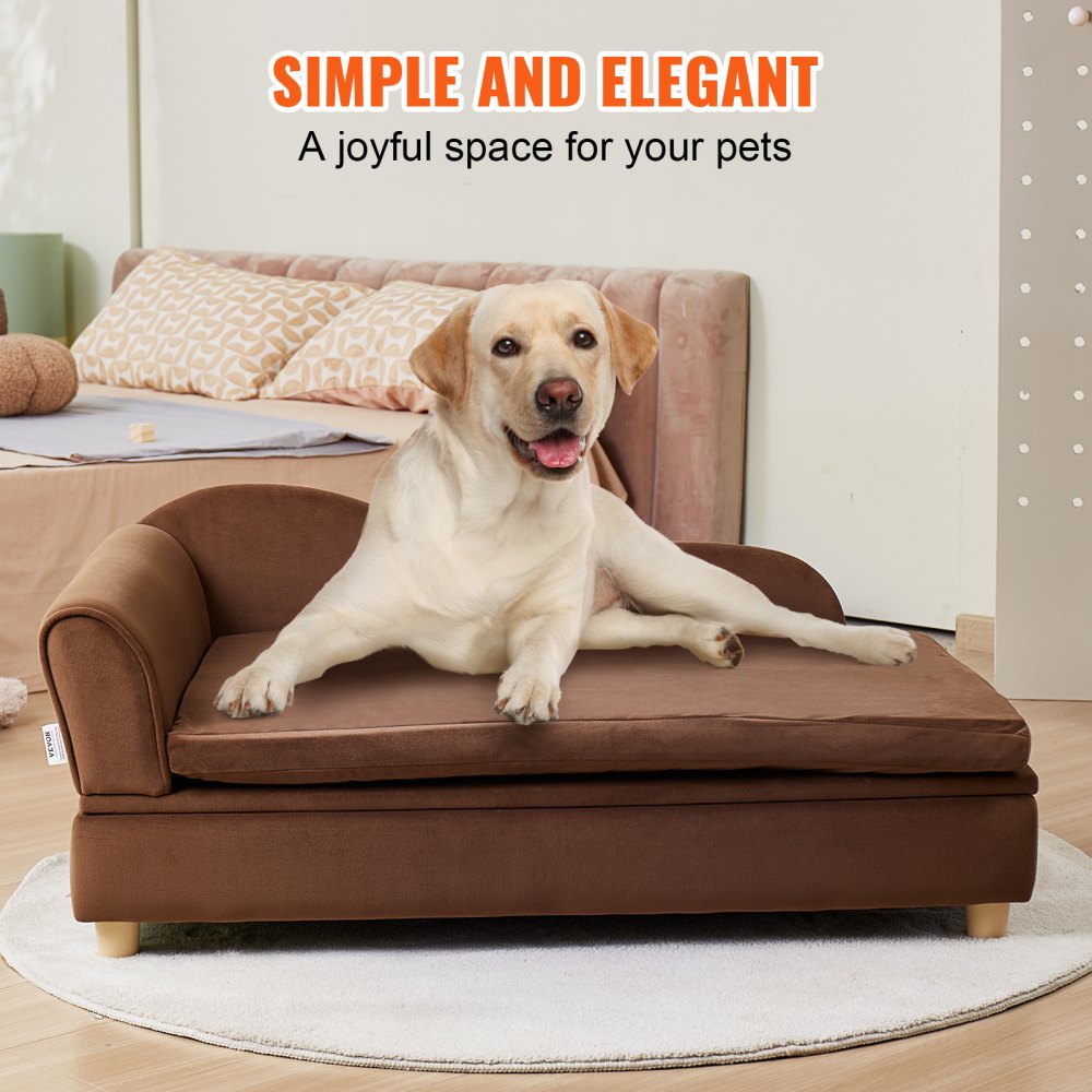 VEVOR hondenbank, hondenbank voor grote honden en katten, zacht fluwelen hondenslaapbank, 50 kg zware kattenbank, hondenbed huisdierbed donkerbruin
