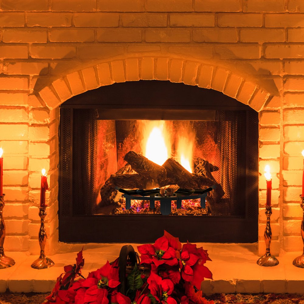 open haard met VEVOR houtrooster, kerstversiering, 12 steunbalken voor hout en kolen.