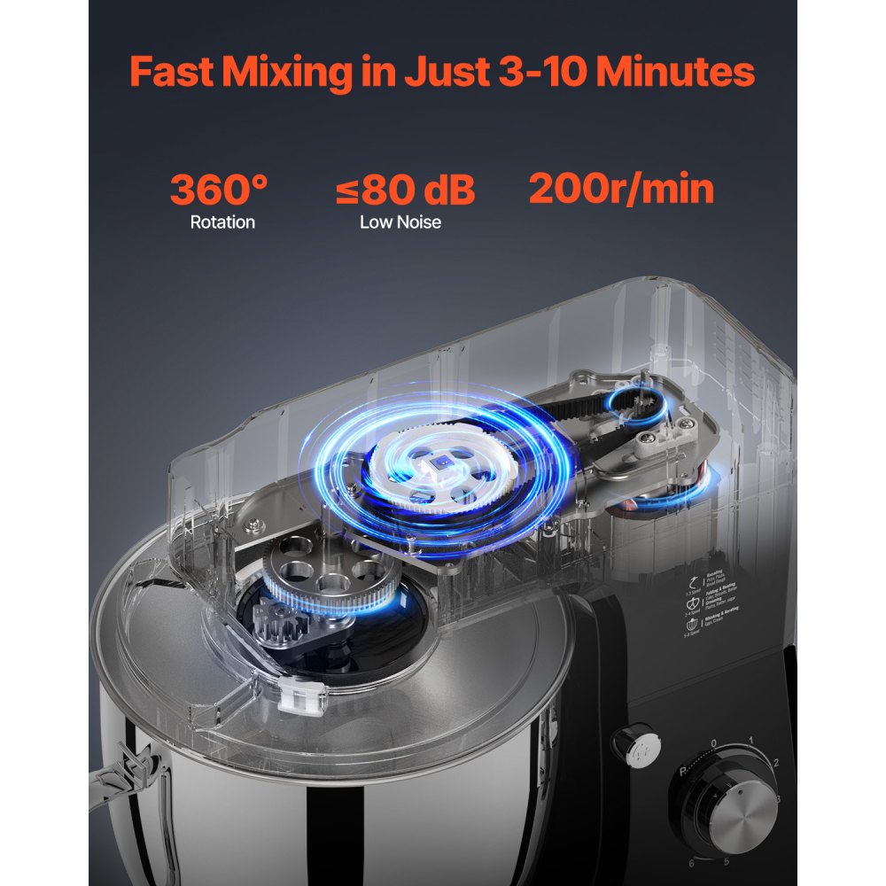 VEVOR Keukenmachine Elektrische Deegmixer 7,84L 1400W Zwart Standmixer