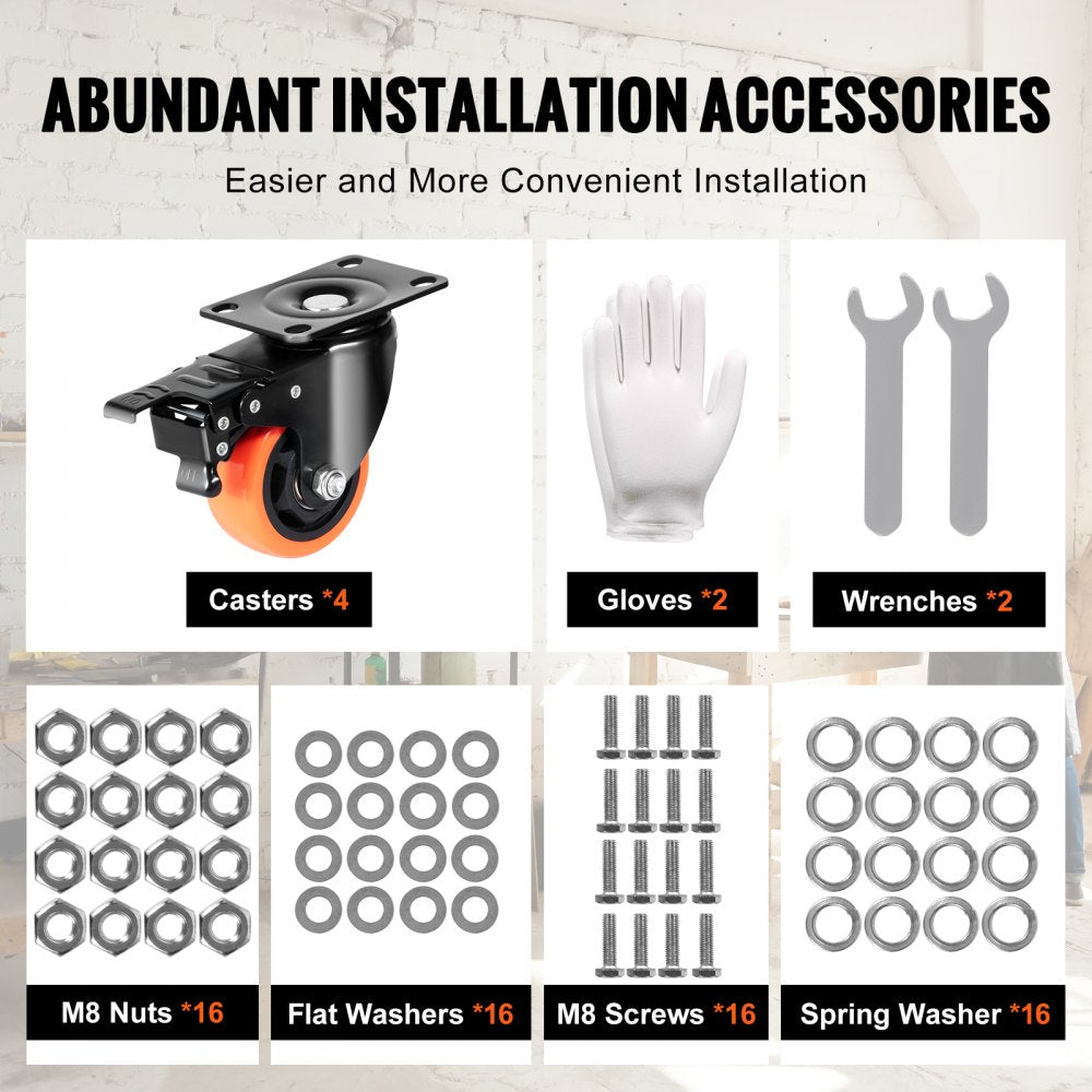 Onze computerstoelwielen worden geleverd met uitgebreide montageaccessoires, waardoor ze eenvoudig te installeren zijn en aan te passen aan verschillende montagemethoden.