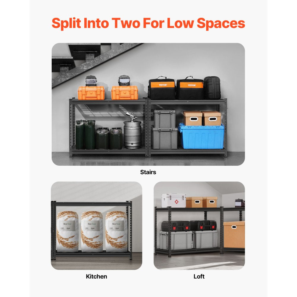 Het gespleten ontwerp van het garageopslagrek zorgt voor maximale opslagfunctionaliteit in ruimtes met beperkte hoogte, zoals onder trappen, kelders en zolders.